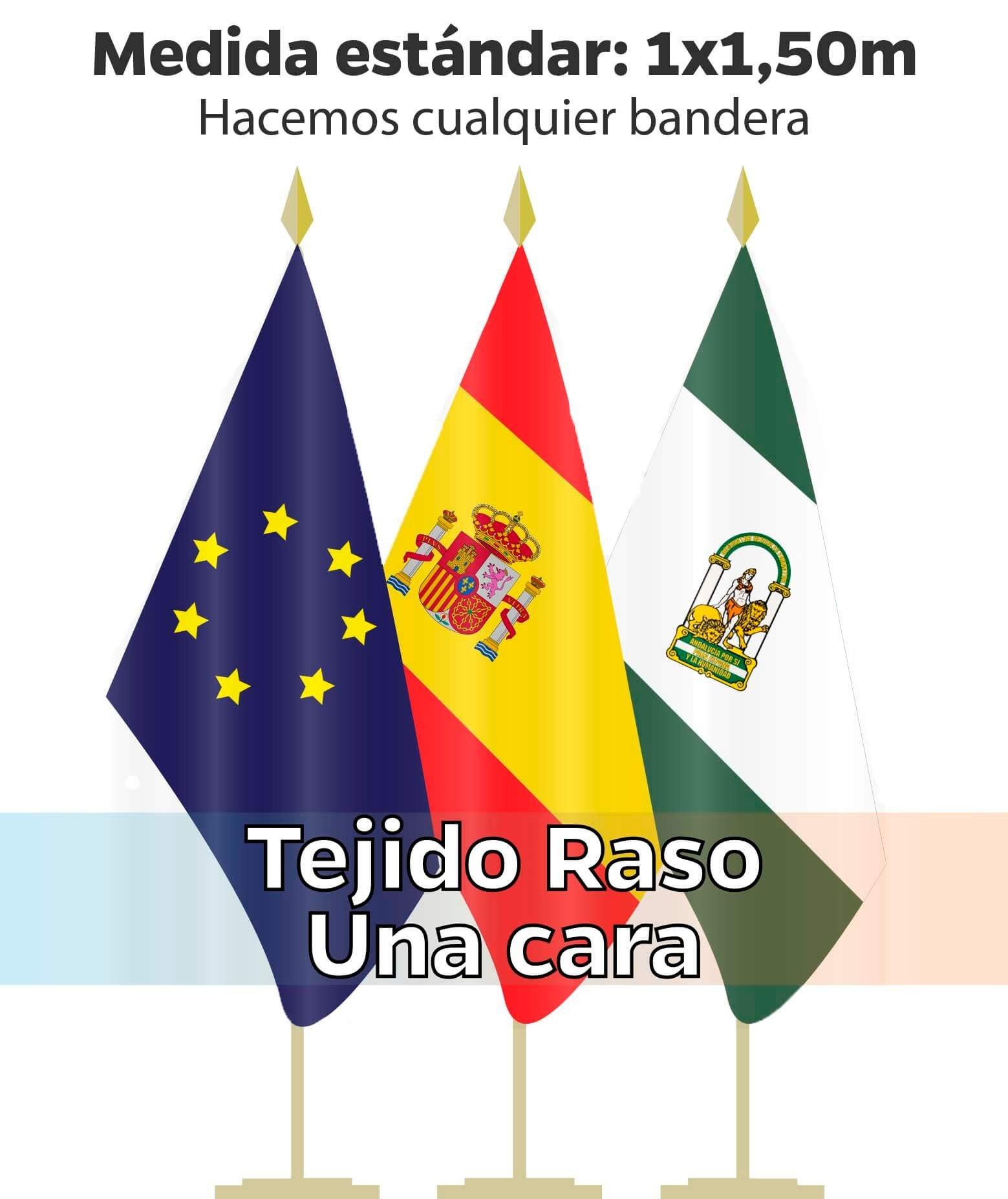 Comprar banderas en raso. Confeccionadas con tejido raso con impresión a una cara, de manera que por la cara trasera es blanco.