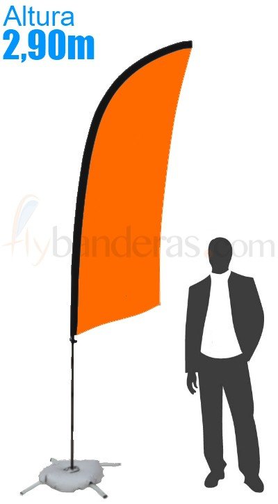 Banderola publicitaria fly banner vela o surf de tamaño estándar. Su altura de 2,90m desde el suelo hasta la parte más superior, la hace perfecta para cualquier tipo de evento, feria, presentación, dar mayor visibilidad a su negocio, en definitiva, para cualquier tipo de publicidad.
