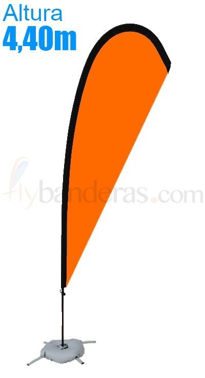 Banderola publicitaria fly banner lágrima o gota de tamaño XL, con 4,40 metros de altura desde la base, hasta el punto más alto.