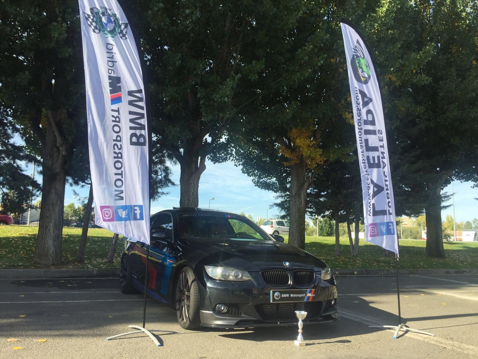 - Incluye todo lo necesario: textil impreso personalizado + base + mástil
